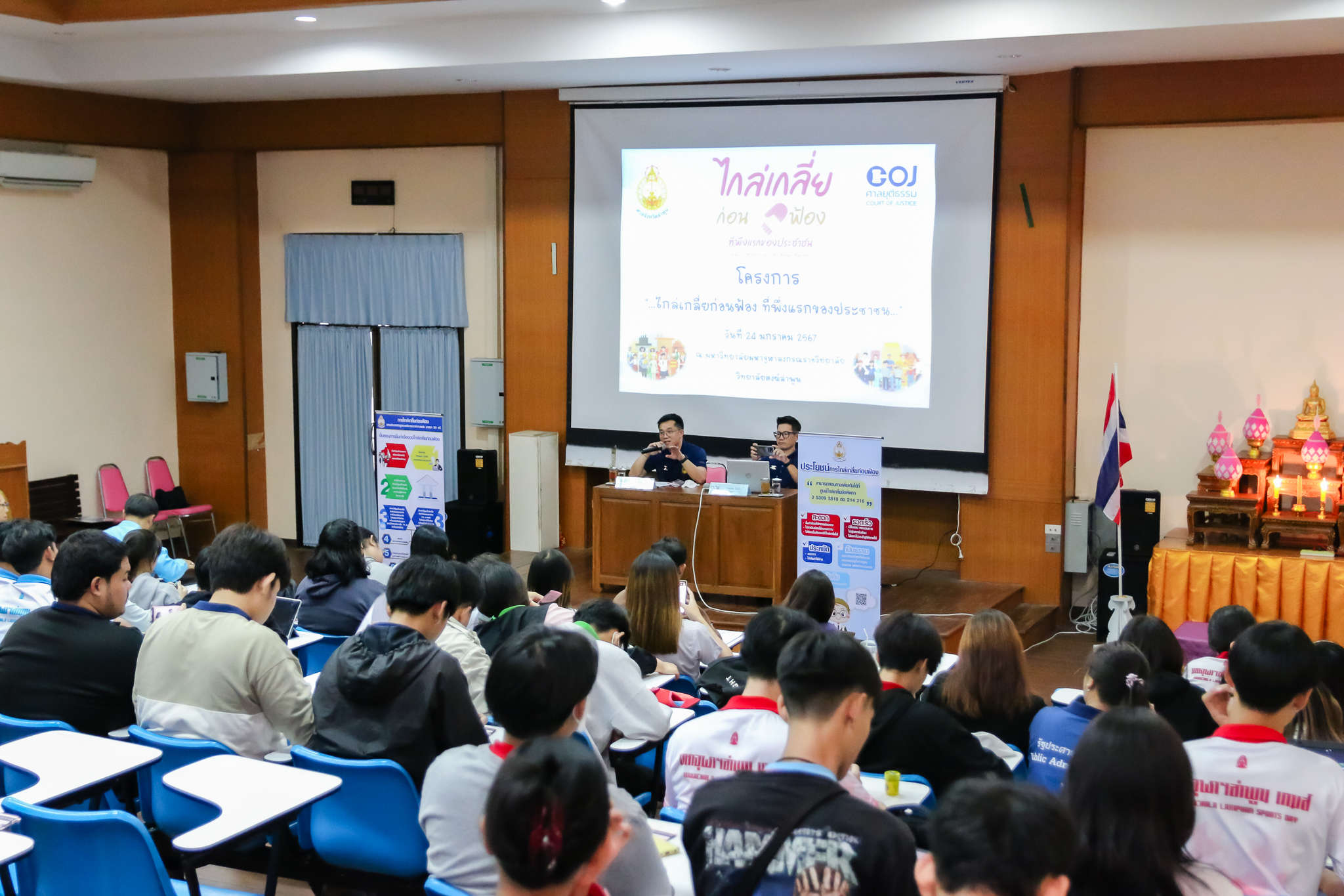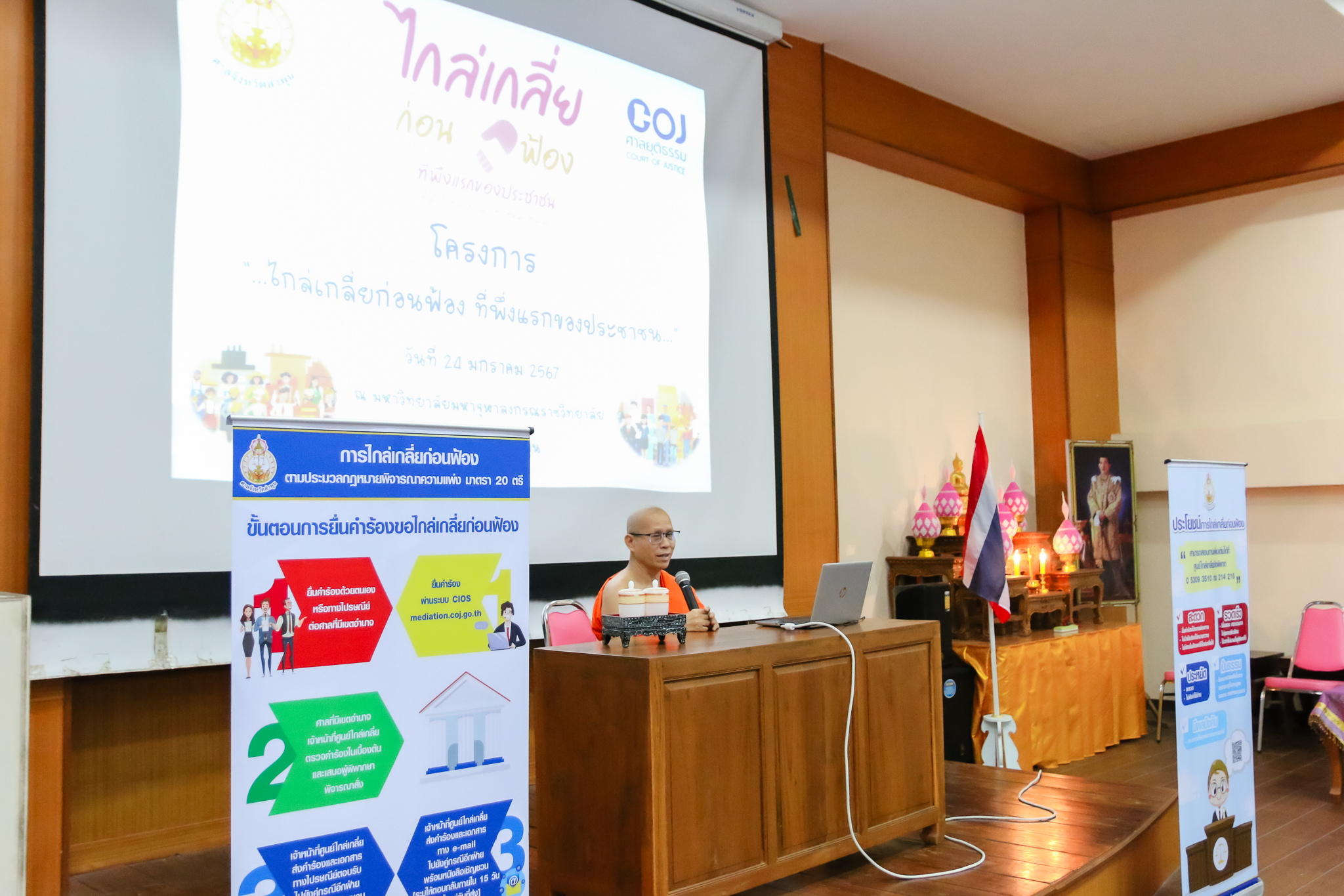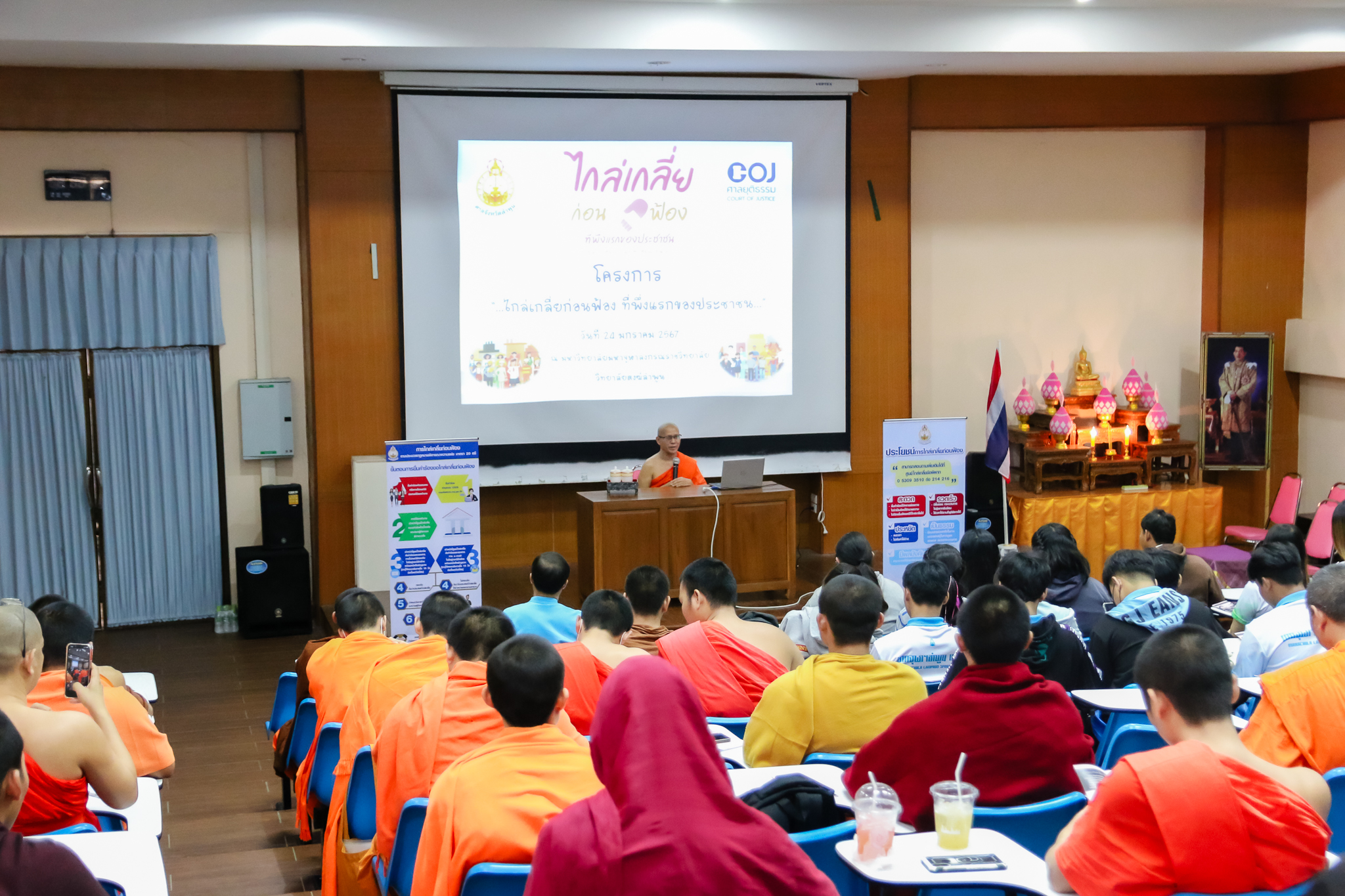“รู้เรื่องกระบวนการทางกฎหมาย จะเป็นประโยชน์อย่างยิ่งต่อตนเอง และคนรอบข้าง” / ข่าวกิจกรรม / By วิทยาลัยสงฆ์ลำพูน ผู้บริหาร คณาจารย์ เจ้าหน้าที่ และนิสิต วิทยาลัยสงฆ์ลำพูนร่วมรับฟังการบรรยายพิเศษโดยศาลจังหวัดลำพูนเกี่ยวกับการไกล่เกลี่ยก่อนฟ้องคดี “รู้เรื่องกระบวนการทางกฎหมาย จะเป็นประโยชน์อย่างยิ่งต่อตนเอง และคนรอบข้าง” ในวันพุธ ที่ ๒๔ มกราคม ๖๗เวลา ๑๓.๓๐ น. ณ อาคารสำนักงาน ห้องเธียร์เตอร์ ชั้น ๓ วิทยาลัยสงฆ์ลำพูน มหาวิทยาลัยมหาจุฬาลงกรณราชวิทยาลัย