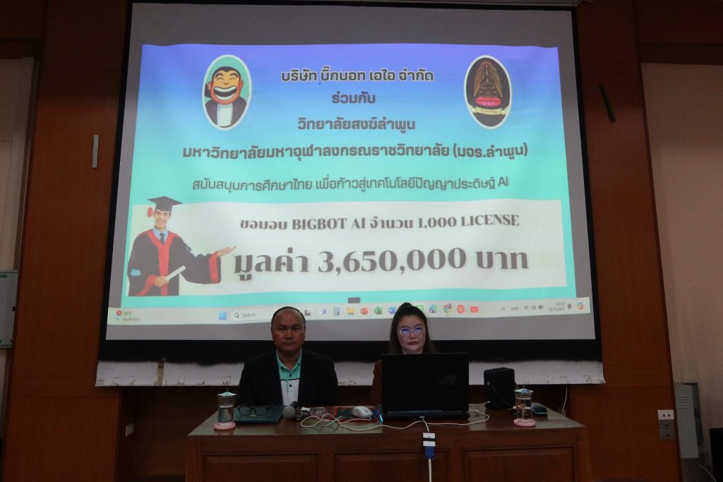 บริษัท บิ๊กบอท เอไอ จำกัดสมับสนุนการศึกษาไทย เพื่อก้าวสู่เทคโนโลยีปัญญาประดิษฐ์ AI / ข่าวกิจกรรม / By วิทยาลัยสงฆ์ลำพูน บริษัท บิ๊กบอท เอไอ จำกัดร่วมกับ วิทยาลัยสงฆ์ลำพูน มหาวิทยาลัยมหาจุฬาลงกรณราชวิทยาลัย (มจร.ลำพูน)สมับสนุนการศึกษาไทย เพื่อก้าวสู่เทคโนโลยีปัญญาประดิษฐ์ AIBIGBOT AI ได้มอบทุน จำนวน ๑,๐๐๐ LICENSEมูลค่า ๓,๖๕๐,๐๐๐ บาท ให้กับทางวิทยาลัยสงฆ์ลำพูน ในวันที่ ๓๑ กรกฎาคม ๖๗