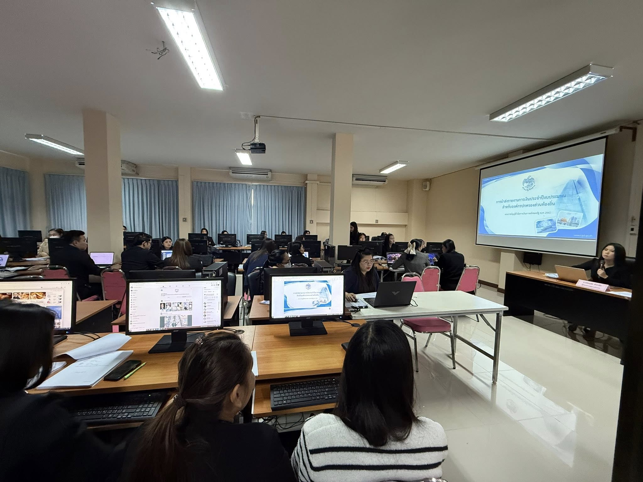 และในวันเดียวกัน สำนักงานคลังจังหวัดลำพูนได้เข้ามาใช้สถานที่ของวิทยาลัยจัดโครงการฝึกอบรมเชิงปฏิบัติการ หลักสูตรการจัดทำรายงานการเงินรวมภาครัฐด้วยระบบอิเล็กทรอนิกส์ พร้อมฝึกปฏิบัติการใช้ระบบตรวจสอบและวิเคราะห์รายงานการเงินให้แก่บุคลากรองค์กรปกครองส่วนท้องถิ่น ในวันพฤหัสบดี ที่ ๒๗ พฤศจิกายน ๒๕๖๘