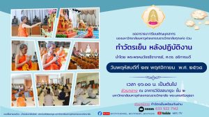 ด้วยมหาวิทยาลัยมหาจุฬาลงกรณราชวิทยาลัย ได้มีนโยบายด้านการส่งเสริม และสร้าง อัตลักษณ์ เอกลักษณ์ของมหาวิทยาลัยมหาจุฬาลงกรณราชวิทยาลัย จึงมีการจัดกิจกรรมทำวัตรเย็น เจริญพระพุทธมนต์ หลังการปฏิบัติงาน ประจำเดือนพฤศจิกายน ๒๕๖๘ โดย ผู้บริหการ คณาจารย์ เจ้าหน้าที่ มหาวิทยาลัยมหาจุฬาลงกรณราชวิทยาลัย ทั้งส่วนกลางและส่วนภูมิภาคทั่วประเทศ วันพฤหัสบดีที่ ๒๗ พฤศจิกายน พ.ศ. ๒๕๖