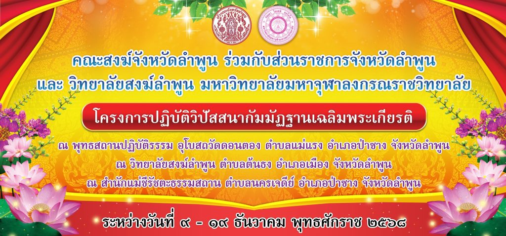 ประชุมเตรียมความพร้อมงานโครงการปฏิบัติวิปัสสนากัมมัฏฐานเฉลิมพระเกียรติ ระหว่างวันที่ ๙ – ๑๙ ธันวาคม พ.ศ. ๒๕๖๘ / ข่าวกิจกรรม / By วิทยาลัยสงฆ์ลำพูน ประชุมเตรียมความพร้อมงานโครงการปฏิบัติวิปัสสนากัมมัฏฐานเฉลิมพระเกียรติ ระหว่างวันที่ ๙ – ๑๙ ธันวาคม พ.ศ. ๒๕๖๘ในวันที่ ๑ ธันวาคม ๖๘ เวลา ๑๓.๐๐ น.…..ขอเชิญชวนร่วมทำบุญเป็นเจ้าภาพภัตตาหารเช้า ภัตตาหารเพล และน้ำปานะ ในโครงการปฏิบัติวิปัสสนากัมมัฎฐานเฉลิมพระเกียรติ ระหว่างวันที่ ๙ – ๑๙ ธันวาคม พ.ศ. ๒๕๖๘พระภิกษุสามเณร ๑๘๙ รูป และ อุบาสกอุบาสิกา ๔๑๐ คน รวม ๕๙๙ รูป/คนณ สำนักปฏิบัติธรรมพุทธสถานอุโบสถดอนตอง, วิทยาลัยสงฆ์ลำพูน, และ สำนักปฏิบัติธรรมรัชตะธรรมสถานติดต่อสอบถามได้ที่. วิทยาลัยสงฆ์ลำพูน โทร. ๐๕๓ – ๕๖๓๑๖๓