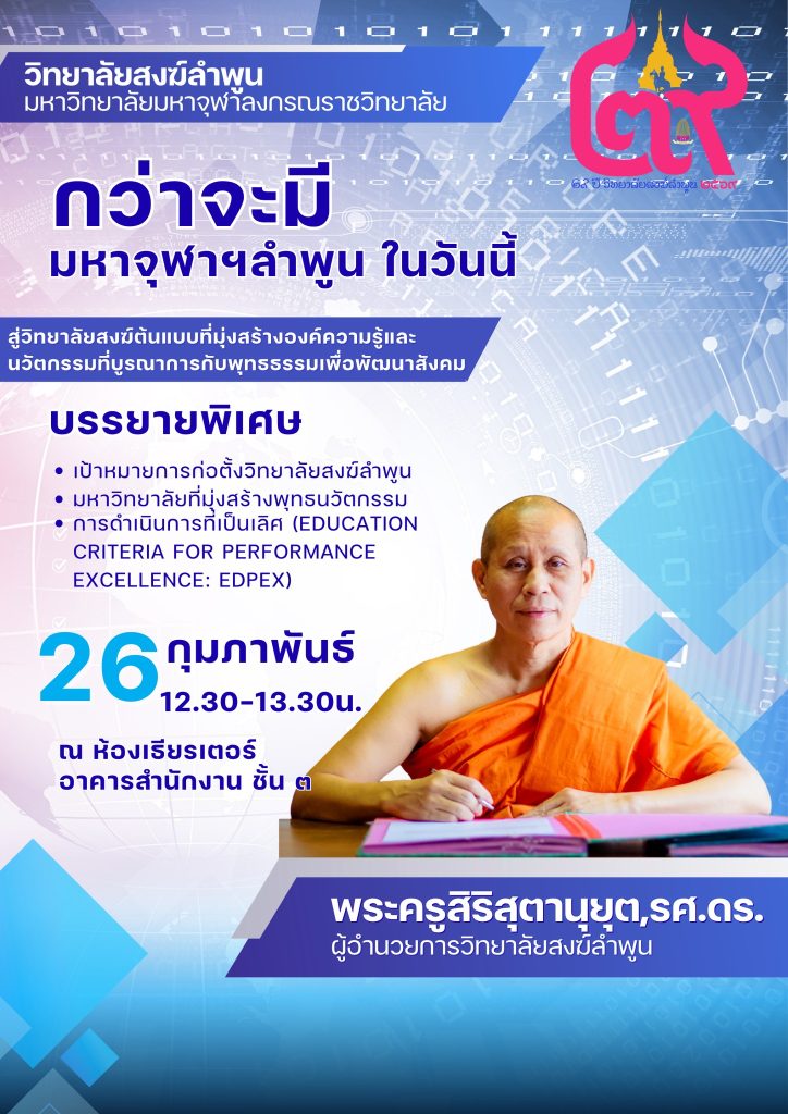 จัดกิจกรรมครบรอบ ๒๙ ปี วิทยาลัยสงฆ์ลำพูน พร้อมบรรยายพิเศษ โดย พระครูสิริสุตานุยุต,รศ.ดร.