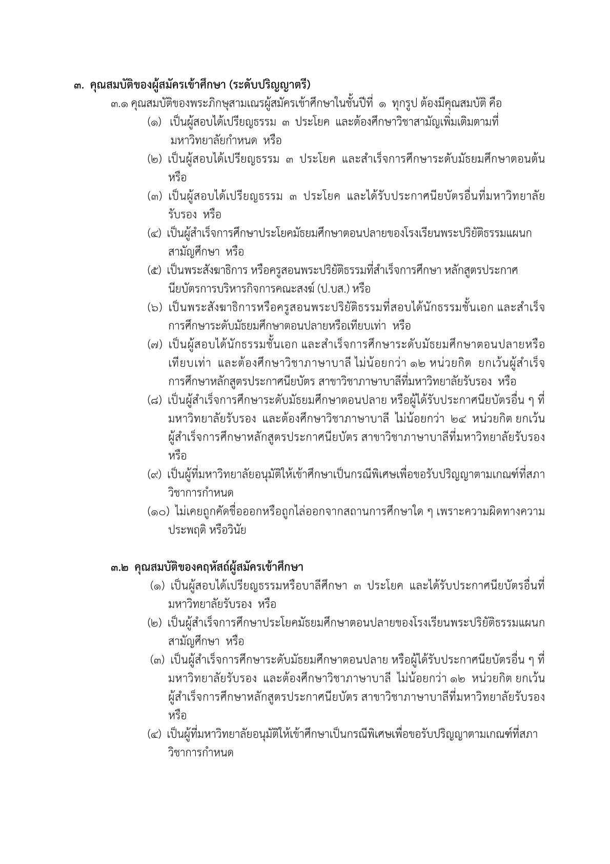 ๓. มีวัดสำหรับพระภิกษุสามเณร ที่จะย้ายสังกัดใกล้ มจร. โดยทางวัดจะรับผิดชอบค่าเล่าเรียนและเดินทาง
