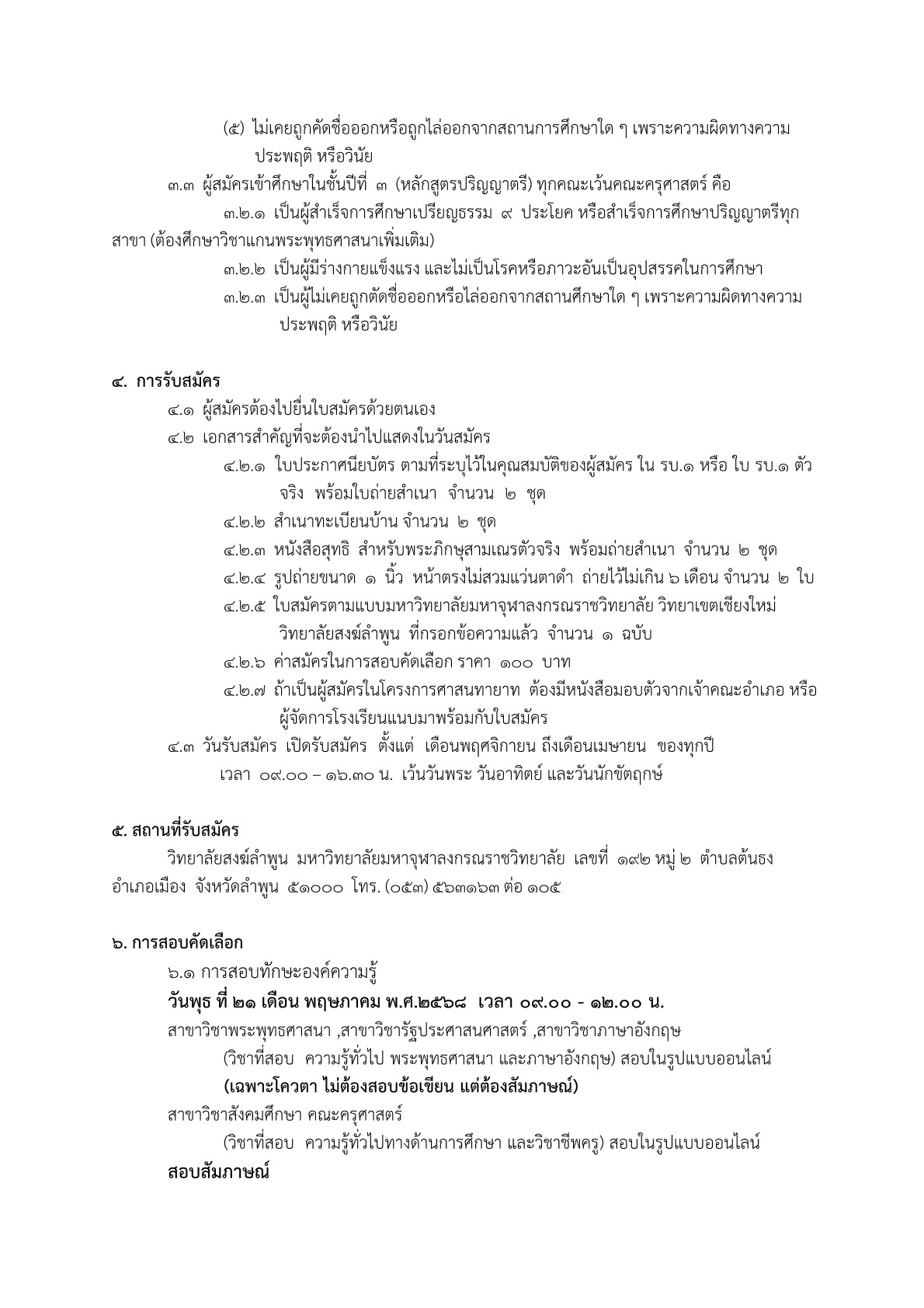 สามารถดาวน์โหลดใบสมัคร หรือ มากรอกใบสมัครที่ห้องสมัครวิทยาลัยสงฆ์ลำพูน พร้อมยื่นใบสมัครและหลักฐานประกอบ