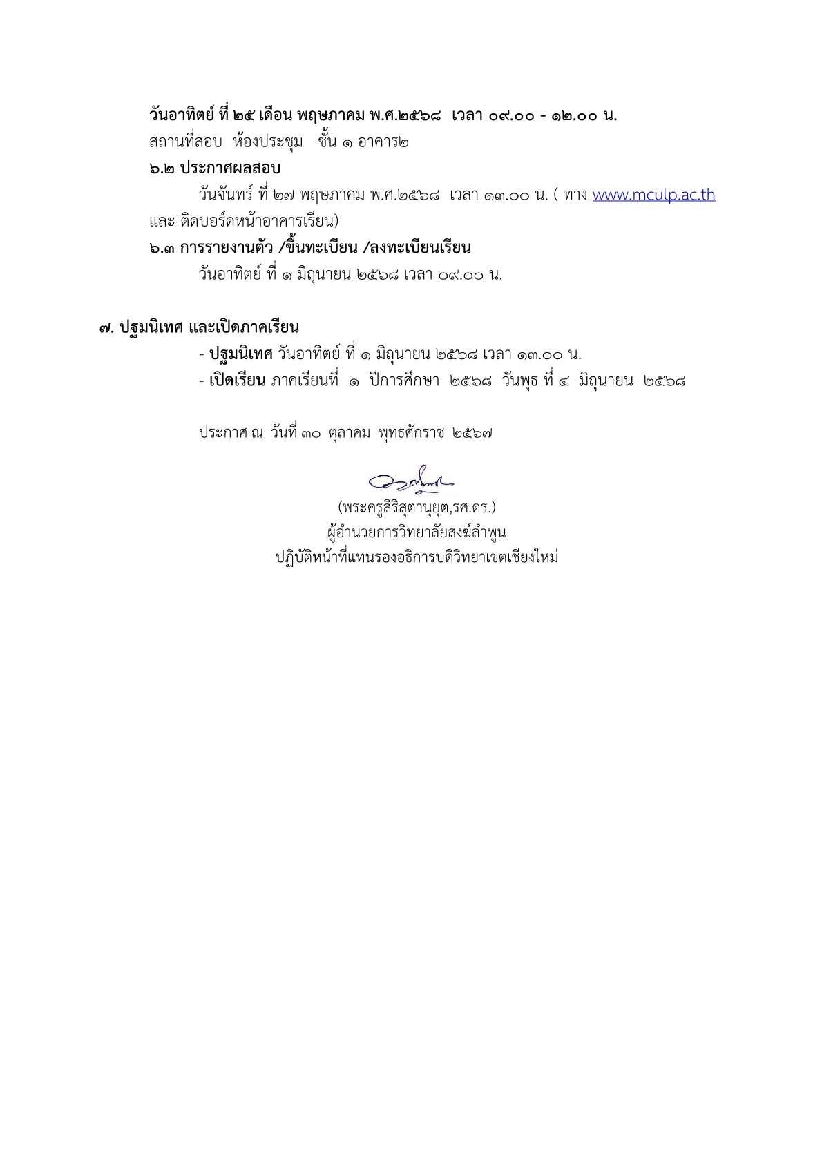 ในกรณีที่จะยื่นใบสมัครผ่านไปรษณีย์ ให้ส่งมาที่ ๑๙๒ หมู่ที่ ๒ ตำบลต้นธง อำเภอเมือง จังหวัดลำพูน ๕๑๐๐๐