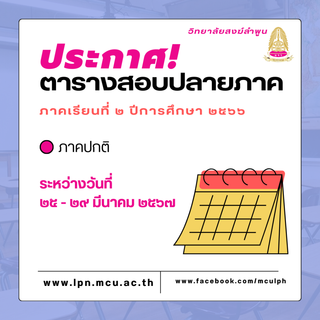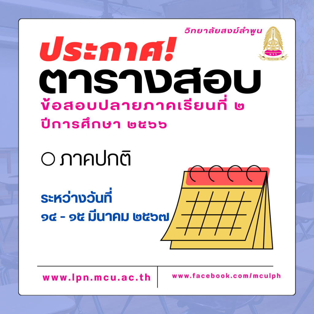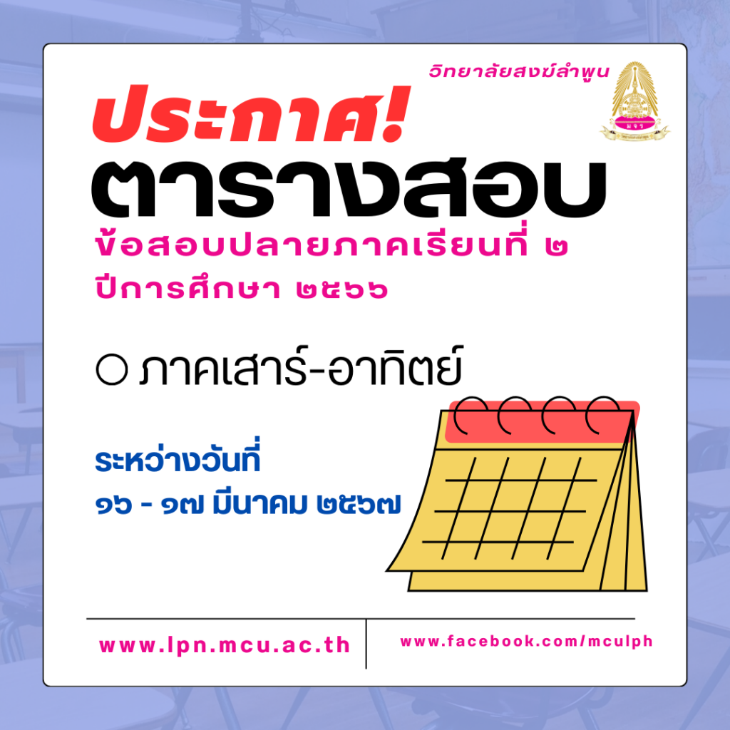 ตารางสอบข้อสอบปลายภาคเรียน ที่ ๒ ปีการศึกษา ๒๕๖๖