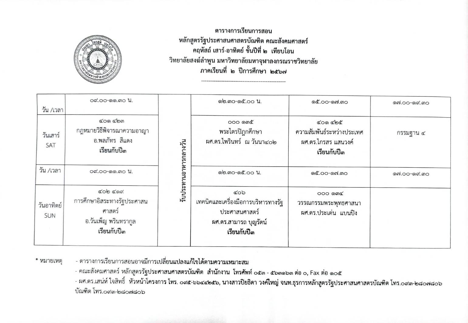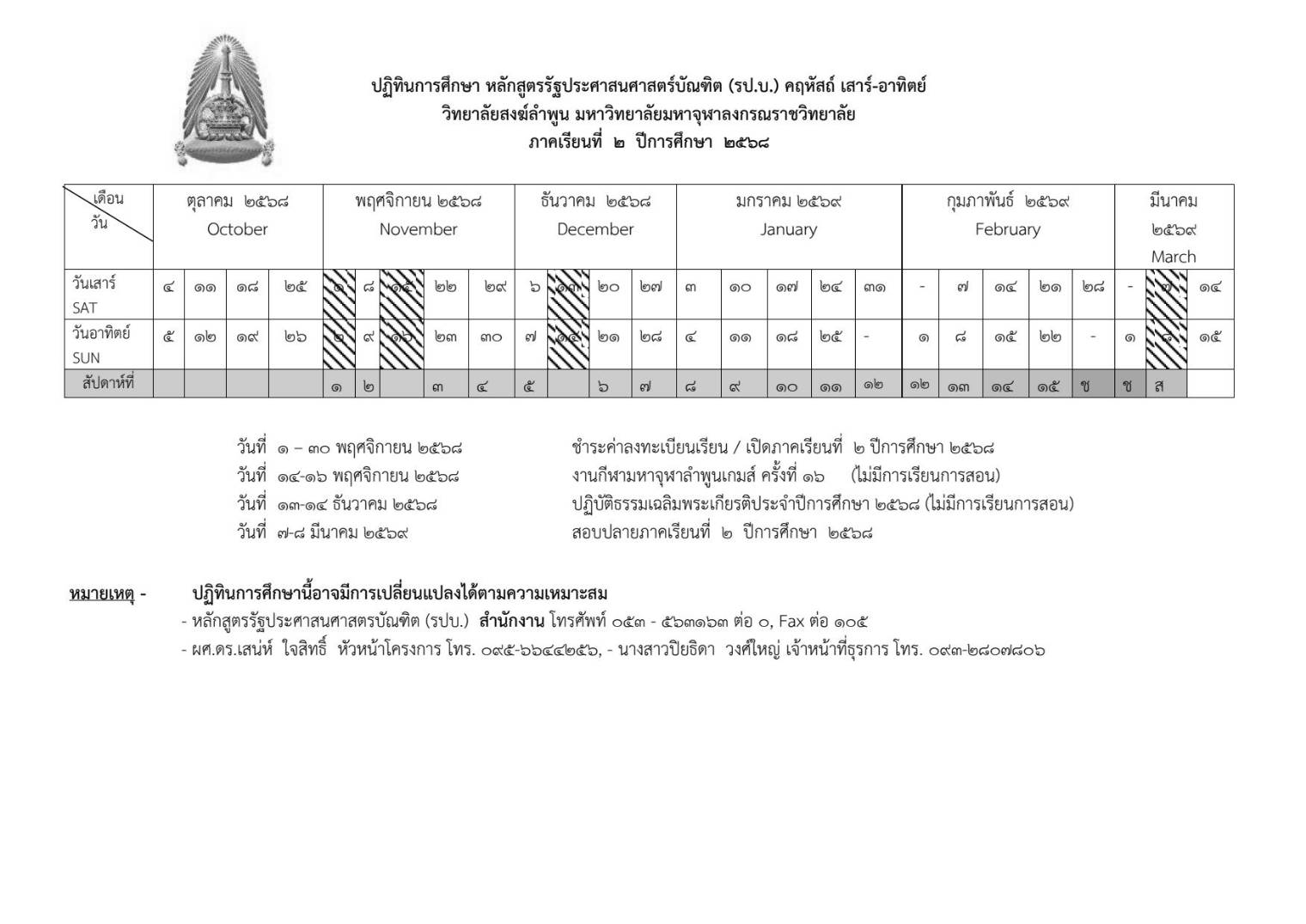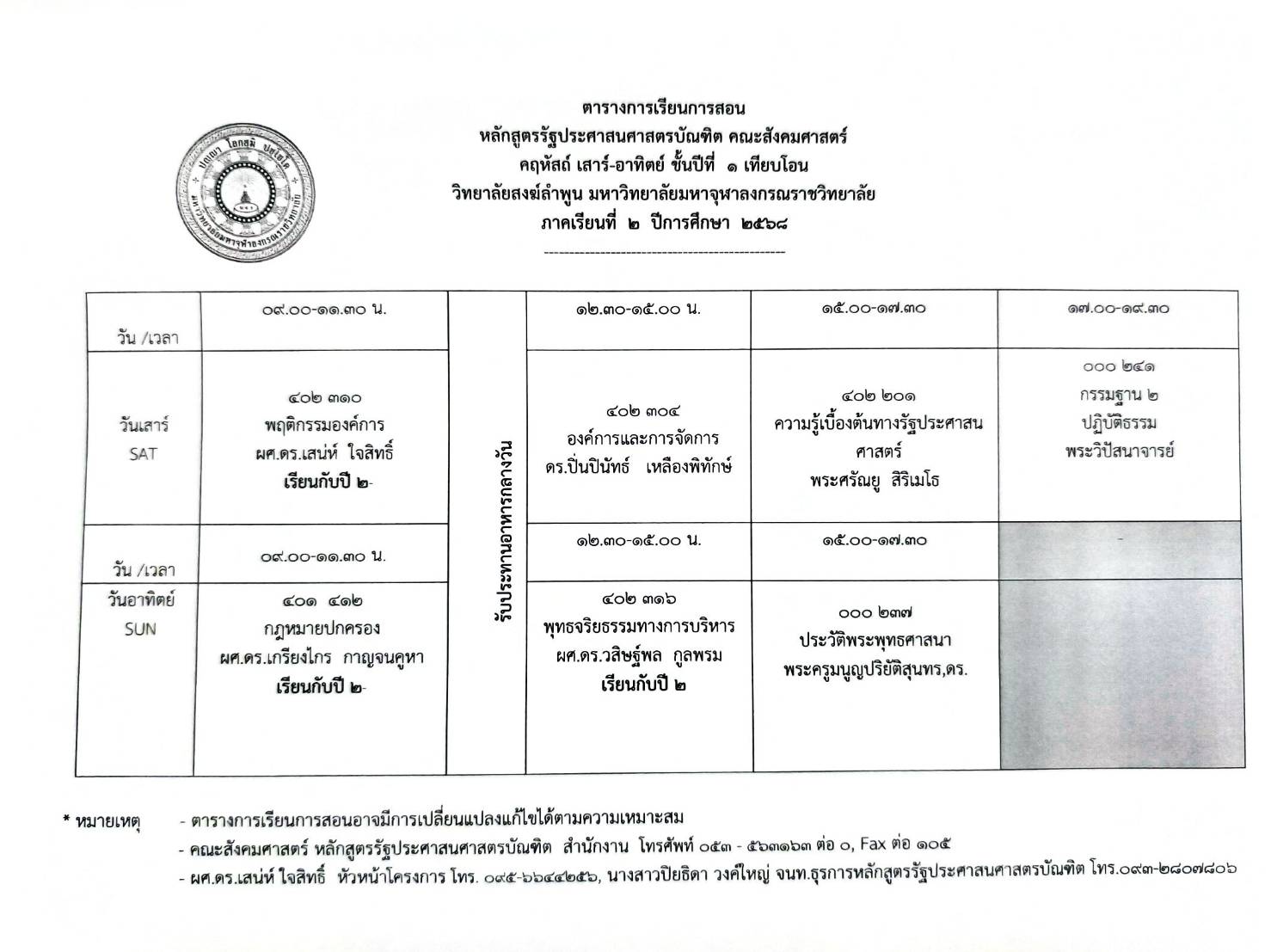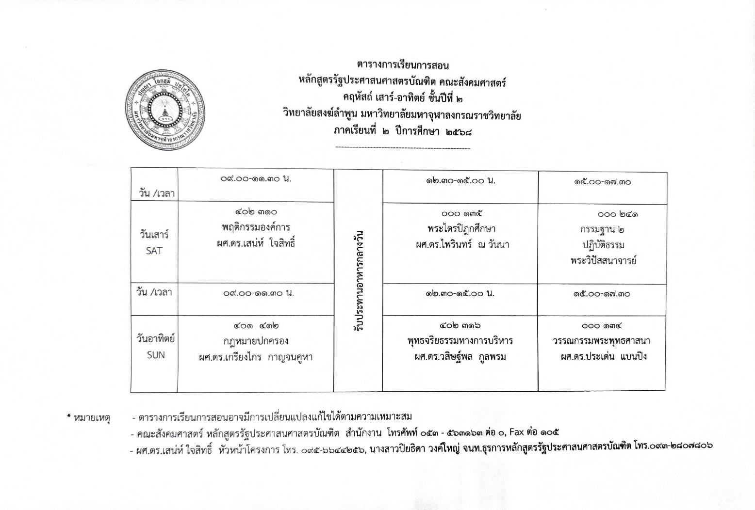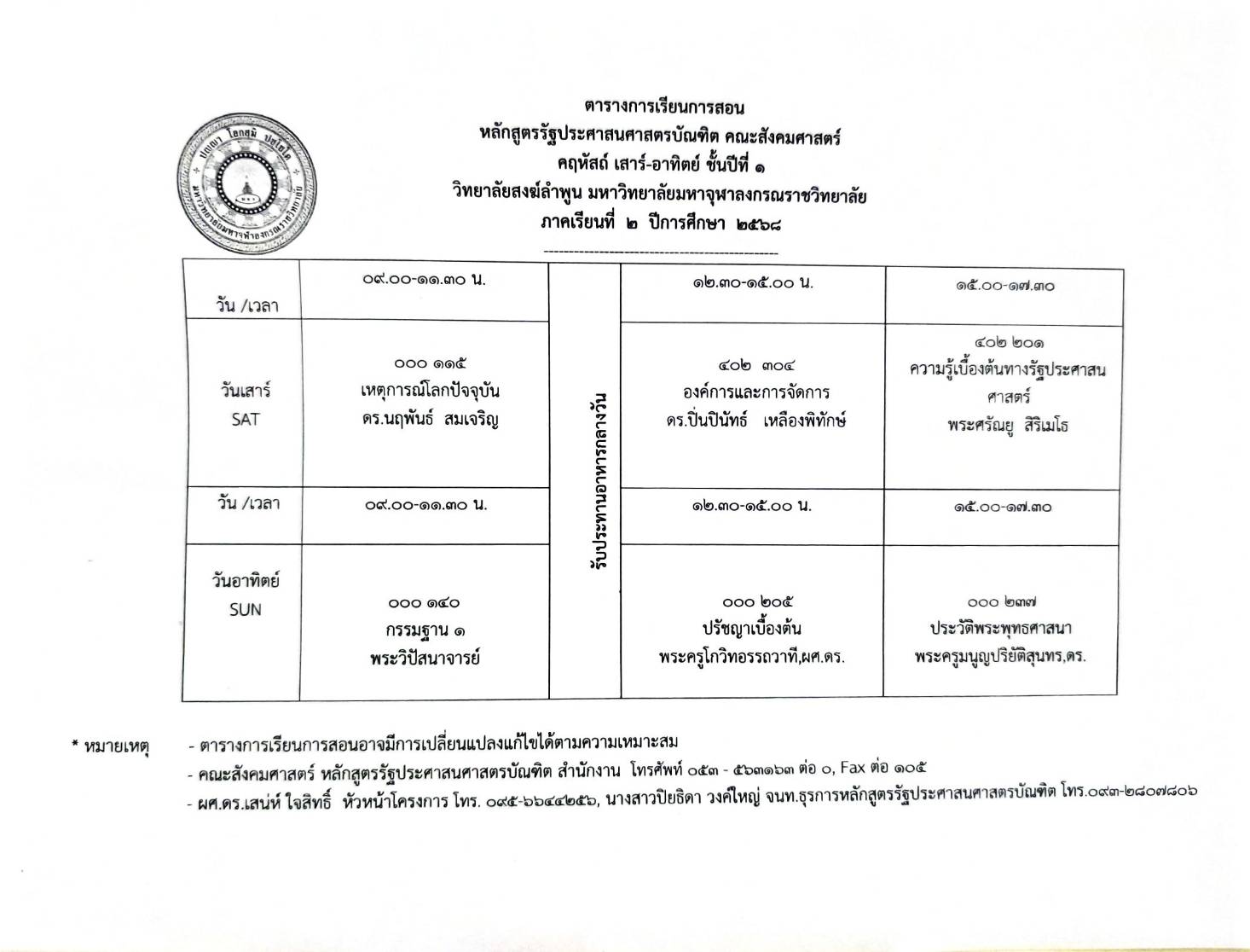 ตารางเรียนคณะสังคมศาสตร์ ภาคเรียนที่ ๒ ปีการศึกษา ๒๕๖๘